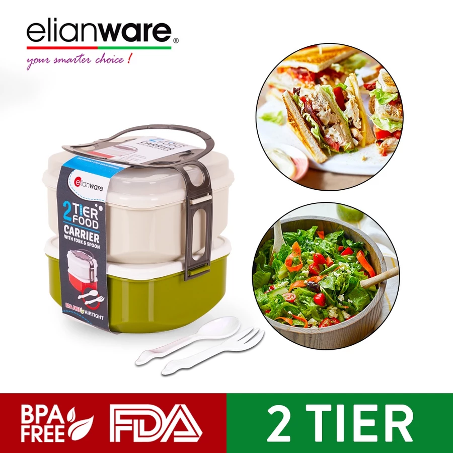 Beranda » Product » ELIANWARE 2 Layer Tier Microwaveable Square Tiffin Food Carrier Lunch Box with Fork & Spoon,BPA Free E-1035/2 199