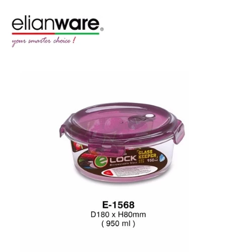 Beranda » Product » Elianware Round Airtight Glasslock Keeper Multipurpose Food Storage Lunch Box 950 ml E-1568 203