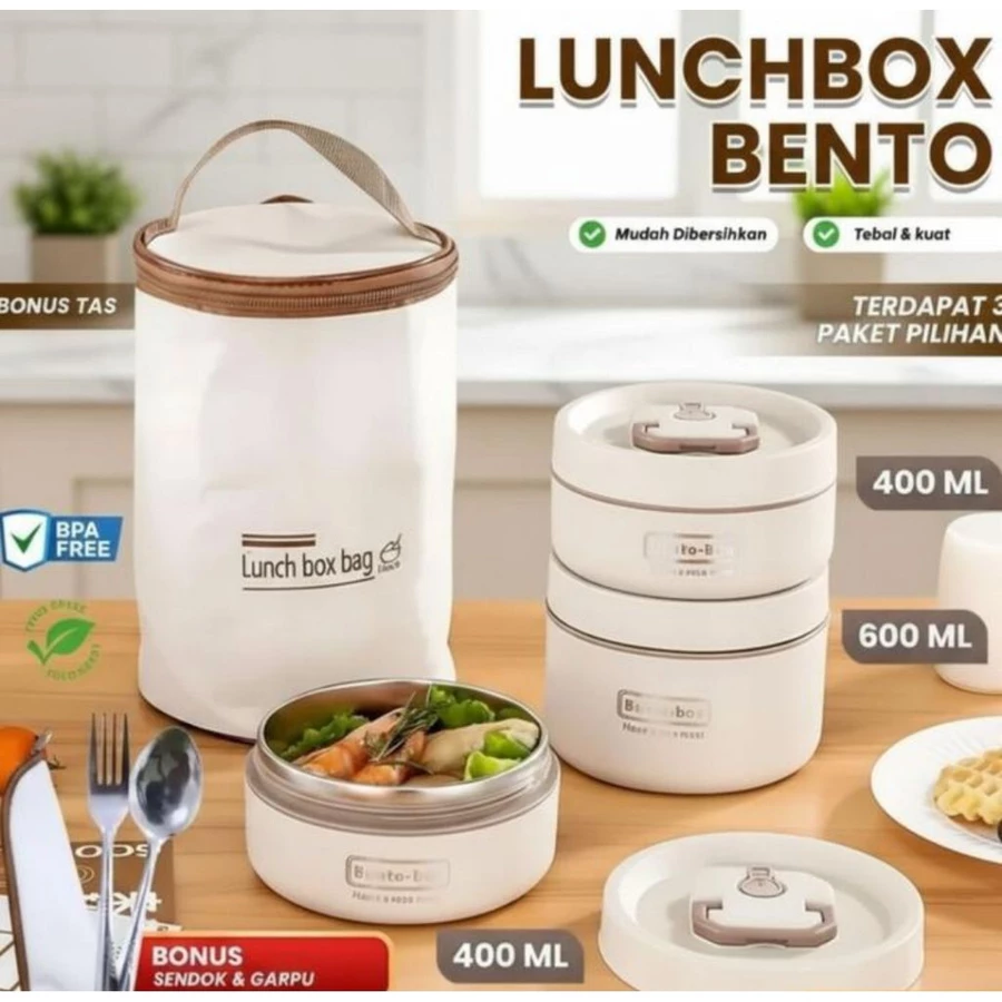 Kotak makan Lunch box bento set stainless bulat ssn 3 SU304 tahan bocor 152