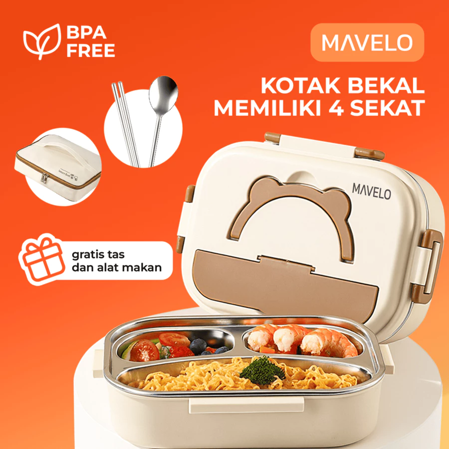 MAVELO Lunch Box Kotak Makan Anak Lucu 3 Sekat Stainless Steel Anti Tumpah 175