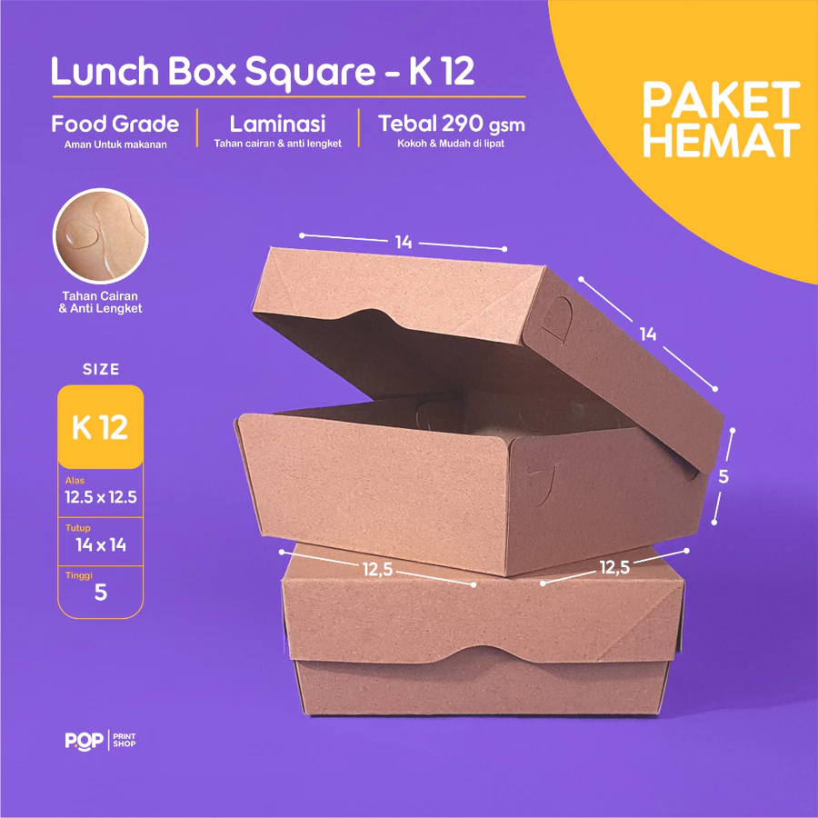 Paper Lunch Box Square K12 | Tebal 290gsm | Food Grade Laminasi Anti Air | 12.5×12.5×5 206